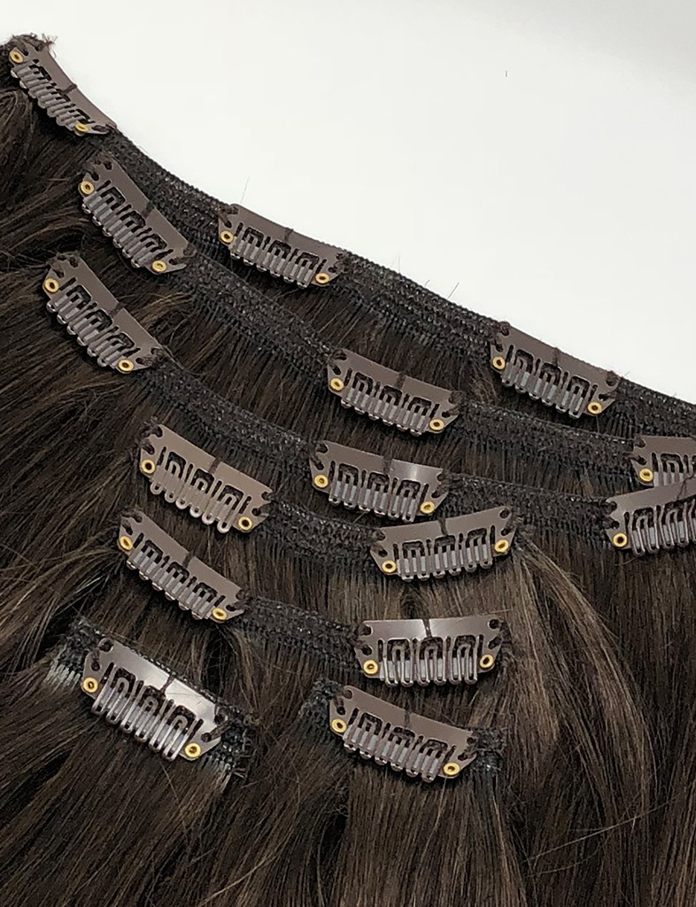 Get the serious and sophisticated brunette look with these magnificent deep brown hair extensions. Touch them, and you’ll be reminded of the softness of velvet and the qualities of the best cared for hair.This pack comes with the thinnest and smoothest 20-inch clip-in darkest brown hair extensions, specifically selected to complement the same type of natural hair.